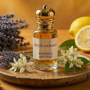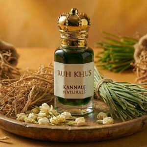 Kannauj produces many famous attars, such as Ruh Gulab, Khus, Jasmine, and the unique Mitti Attar, which captures the scent of the first monsoon rain. After distillation, the attars are aged in camel-hide bottles, allowing the fragrance to mature and deepen over time.