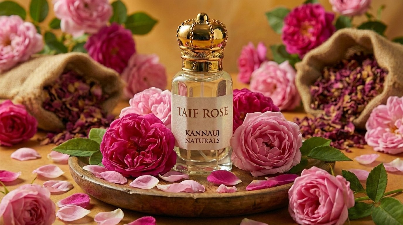 Indulge in the majestic aroma of Taif Rose by Kannauj Naturals. Inspired by the prized roses of Taif, this attar unveils a deep, honeyed floral richness with a soft spicy nuance — elegant, luxurious and unforgettable.